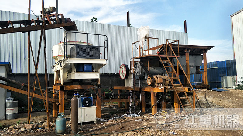 產線配置:給料倉+PE500×750鄂破+HVI0815制砂機+2914洗砂機+3YK1860振動篩+輸送機若干