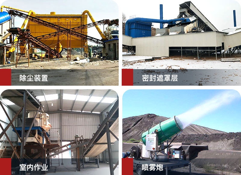 除了這兩個簡單的方法,還有配置除塵設備和改良生產工藝:在兩口處進行有效的密封再安裝風機進行抽塵,在粉塵源上控制粉塵的擴散;再是篩分過程中使用多層篩網,這樣不但物料會更加純凈,粉塵量也會相應減少。