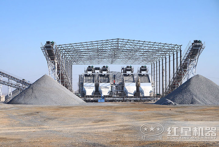 四臺(tái)大型圓振動(dòng)篩作業(yè)現(xiàn)場(chǎng)