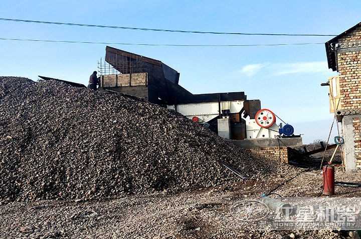 青石破碎機(jī)現(xiàn)場成品物料,買破碎機(jī)就到紅星機(jī)器