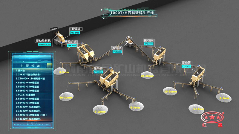 重錘破的時(shí)產(chǎn)1000噸碎石機(jī)全套方案